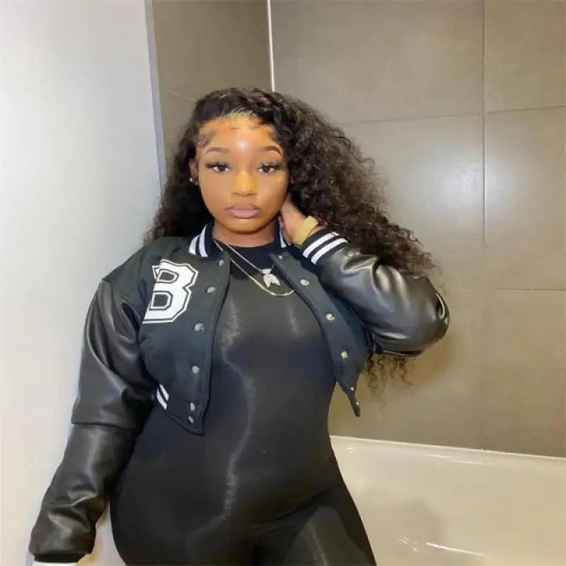 Harajuku Patchwork Long Sleeve Crop Baseball Jacket