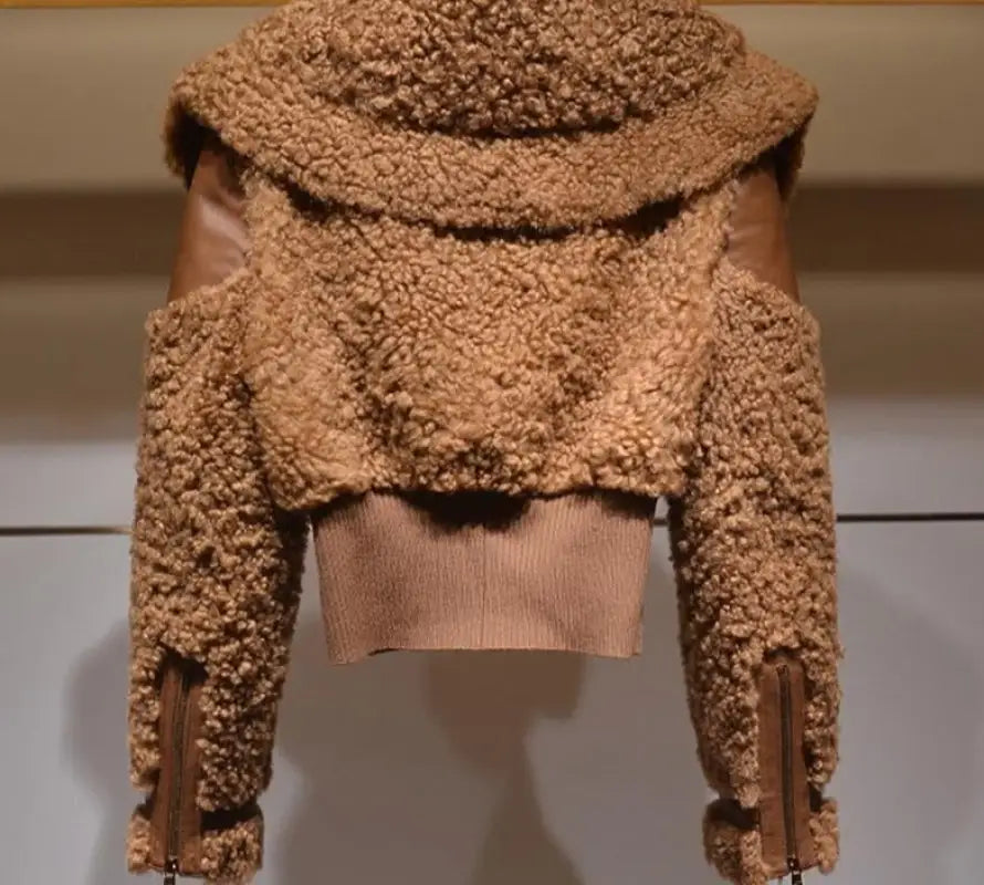 Thick Patchwork Faux Fur Coat - Camel / M