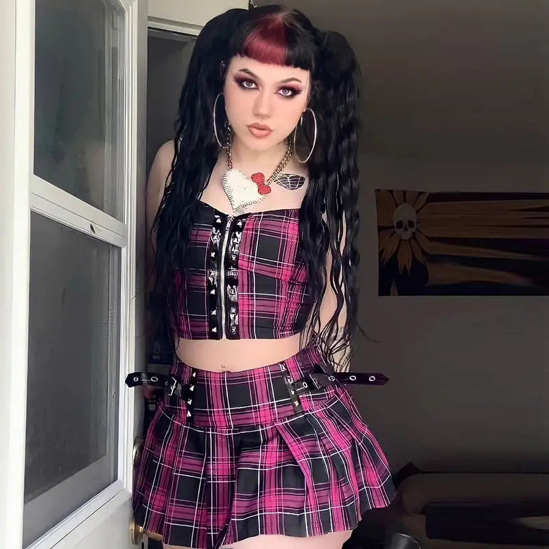 Style: Leather Belt Patchwork Crop Top