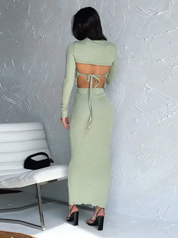 Fashion Chain Shawl Top and Skirt 3 Piece Set - green / M